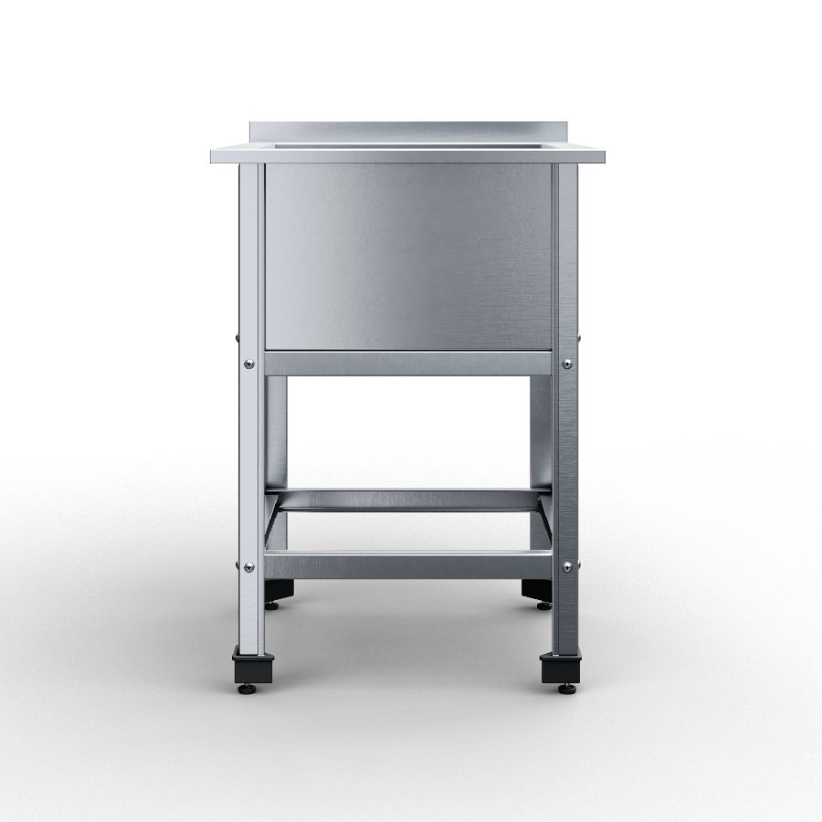 Моечная ванна РАДА ВМСВПЧ-1-4,7/4,8/8,5 используется на предприятиях пищевой промышленности, торговли и общественного питания для мойки продуктов питания, посуды и кухонных принадлежностей. Каркас выполнен из уголка 40х40 мм нержавеющей стали AISI 430 толщиной 1 мм, емкость ванны - из нержавеющей стали AISI 430 толщиной 1 мм. Особенности: - достаточный отступ от стены до задних опорных ножек - возможность расположения стола вплотную к стене несмотря на кабель-каналы, водопроводные и сливные трубы и пр. - оставляется в собранном виде
