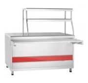- 2 розетки на 16 А, - направляющие без стыков - мы позаботились о качестве сервиса в Вашем кафе: супы и напитки не прольются во время движения подноса (идут в комплекте), - внизу нейтральный шкаф для хранения кухонного инвентаря, - регулируемые по высоте ножки. При заказе изделия из "кашированного" (декорированного под дерево) металла необходимо обязательно указать его код - 21000802117.