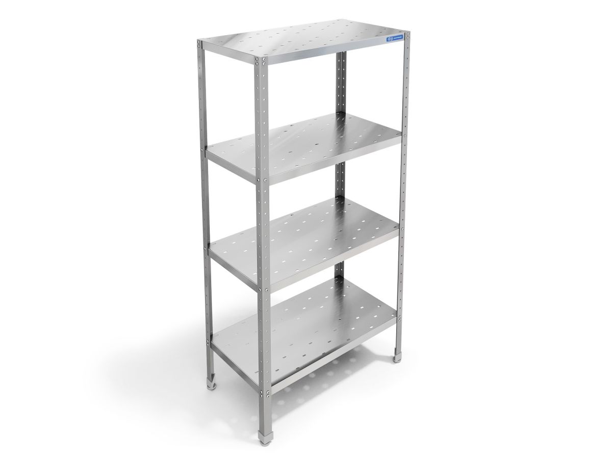 1000х400х1820, аркас разборный, стойки уголок 40х40 из нержавеющей стали AISI 430, толщиной 1,5 мм, 4 перфорированные полки из стали AISI 430, толщиной 0,8 мм 0,08V, м3 Нагрузка на одну полку- 70 кг- равнораспределенная.