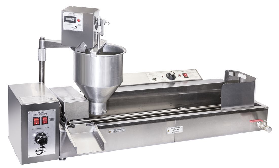 1200x550x600мм, Аппарат пончиковый автоматический, 450-600шт/ч, ванна 16л, нерж.сталь и алюминий, вес пончика 35-65г. В комплекте сменная плунжерная пара D36мм
