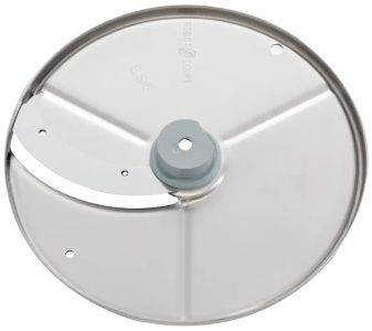 Устанавливается в рабочий отсек овощерезки на вал двигателя, используется для моделей CL20, CL30 Bistro, CL40, R101 XL, R201 XL, R211 XL, R301, R301 Ultra, R401, R402, R402 V.V., изготовлен из нержавеющей стали. Используется для нарезки томатов, кабачков, баклажанов, лука-порея, редьки, грибов, огурцов, перца, свеклы, салата на на ломтики толщиной 5 мм