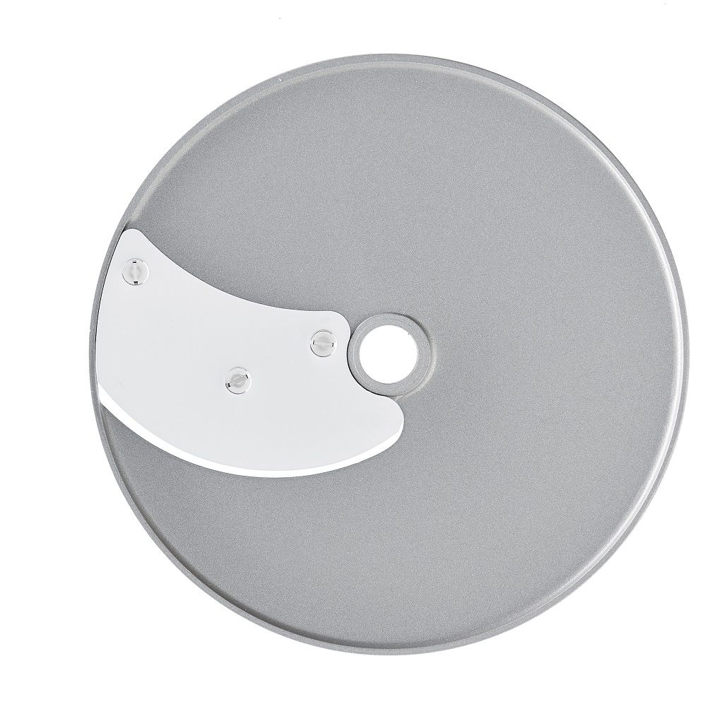 Устанавливается в рабочий отсек овощерезки на вал двигателя, используется для моделей CL50, CL50 Ultra, CL50 Gourmet, CL52, CL55, CL60, CL60 V.V., R502, R502 V.V., R752, R752 V.V., изготовлен из алюминия с покрытием Mineral+. Используется для нарезки томатов, кабачков, баклажанов, лука-порея, грибов, огурцов, перца, свеклы, салата, редьки на ломтики толщиной 4 мм