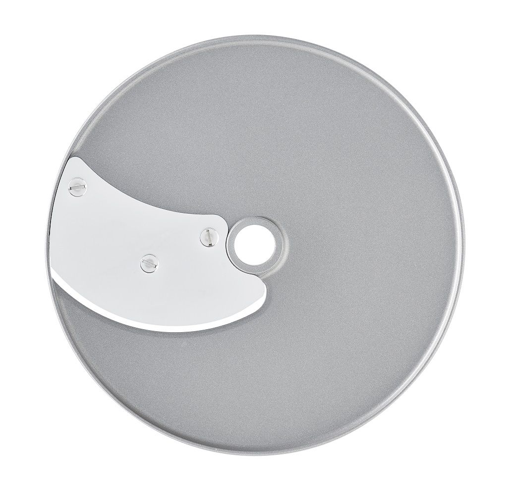 Устанавливается в рабочий отсек овощерезки на вал двигателя, используется для моделей CL50, CL50 Ultra, CL50 Gourmet, CL52, CL55, CL60, CL60 V.V., R502, R502 V.V., R752, R752 V.V. изготовлен из алюминия с покрытием Mineral+. Используется для нарезки томатов, кабачков, баклажанов, лука-порея, грибов, огурцов, перца, свеклы, салата, редьки на на ломтики толщиной 5 мм
