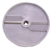 Устанавливается в рабочий отсек овощерезки на вал двигателя, используется для моделей CL50, CL50 Ultra, CL50 Gourmet, CL52, CL55, CL60, CL60 V.V., R502, R502 V.V., R752, R752 V.V., изготовлен из алюминия с покрытием Mineral+. Используется для шинковки капусты, моркови и сыра, 4 мм