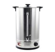 265*265*515мм, 1,8кВт, 220В, 3,5 кг, 15л, (габариты с ручками и краном 340х335х515мм), материал корпуса: нержавеющая сталь, металлический кран, двойные стенки, тип подачи воды: заливной, контроль уровня и температуры воды, индикаторы нагрева, закрытый съемный тэн
