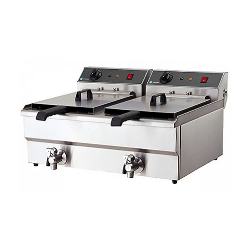 570x460x325мм, 220В, 6 кВт, 11кг, две ванны ёмкостью 10 л (загрузка 5,7 - 8,7л), с крышкой, 2 фритюрные корзины, температурный режим 60-200С