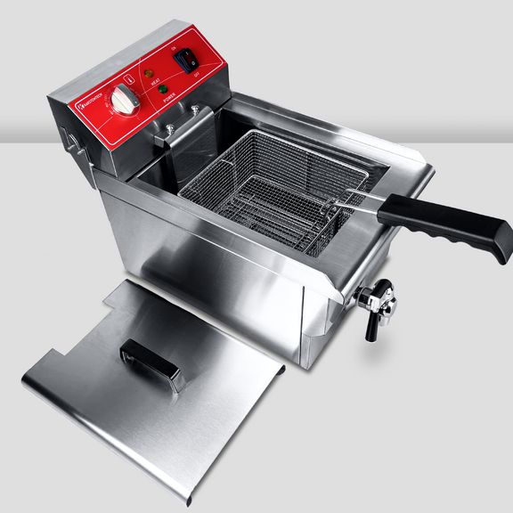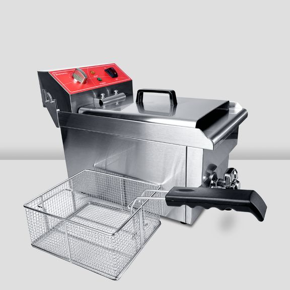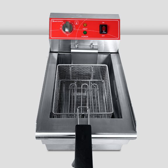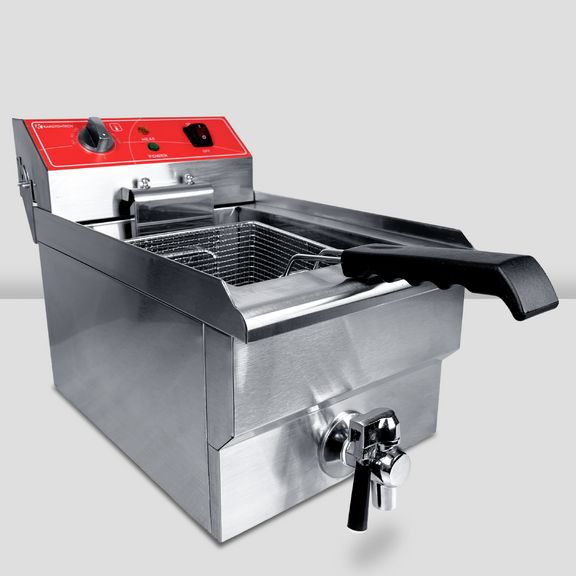 электрический, настольный, рабочая температура 60-200С, защитный термостат, 1 съемный котел емкостью 10 л из нерж.стали с крышкой, 1 фритюрная корзина из нержавеющей стали, материал корпуса - нерж.сталь