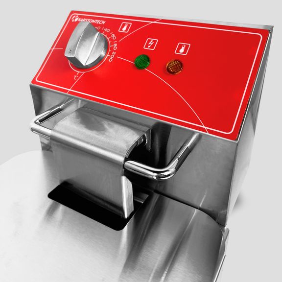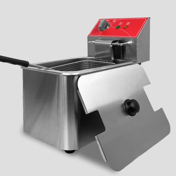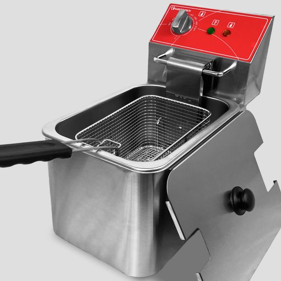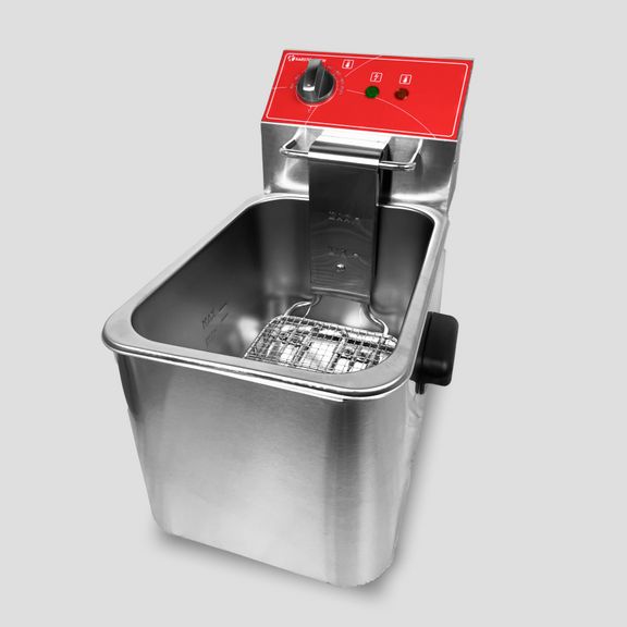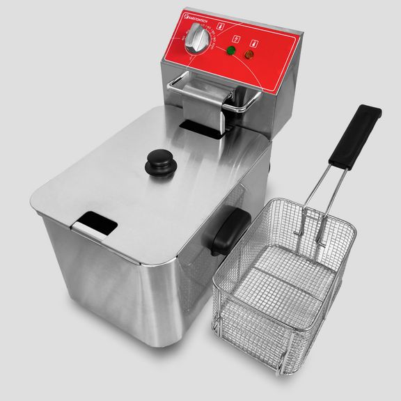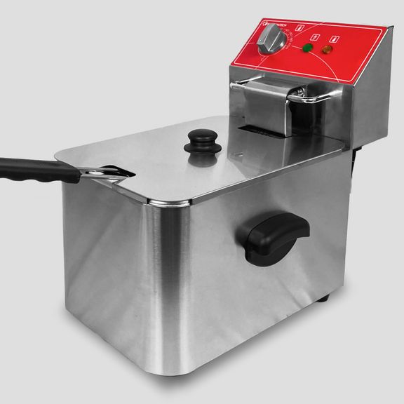 электрическая, настольная, рабочая температура 60-200С, защитный термостат, 1 съемный котел емкостью 4 л из нерж.стали с крышкой, 1 фритюрная корзина из нержавеющей стали, материал корпуса - нерж.сталь