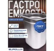Гастроемкость EUROLUX GN 11040 предназначена для приготовления или хранения блюд и продуктов в пароконвектоматах, конвекционных печах, расстоечных шкафах, холодильных и морозильных шкафах, столах и другом оборудовании.