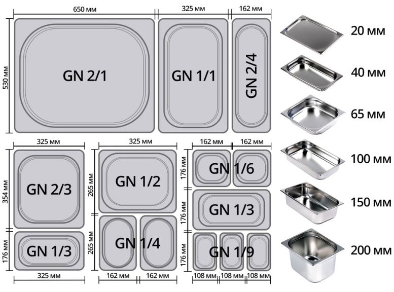 Читать все статьиГастроемкость (Поддон) EUROLUX GN 12040 (325х265х40 мм)