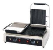 290х440х300 мм, 230В, 1,75 кВт, верхняя и нижняя поверхности гладкие (SS), чугун, размер поверхности 250х250 мм, термостат 50- 300C, корпус из нержавеющей стали, емкость для сбора жира