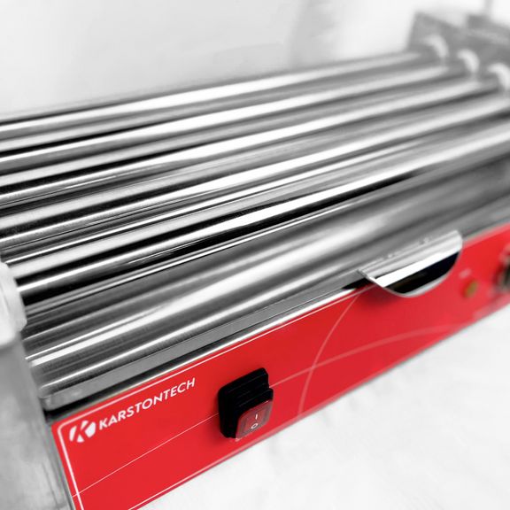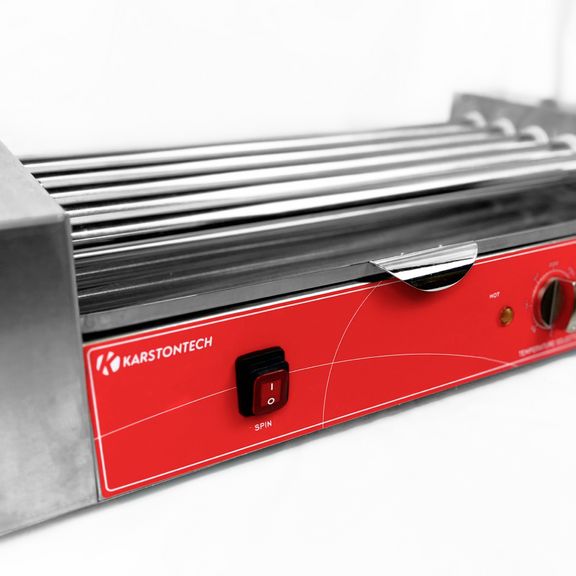 Настольный электрический роликовый гриль для хот-догов, сосисок KARSTONTECH KS-RG05 оснащен 5 роликами для равномерного обжаривания сосисок, сарделек, колбасок на предприятиях общественного питания и торговли. Роликовые грили KARSTONTECH позволяют автоматизировать процесс приготовления, упростить его и добиться стабильного качества приготавливаемого блюда.