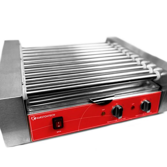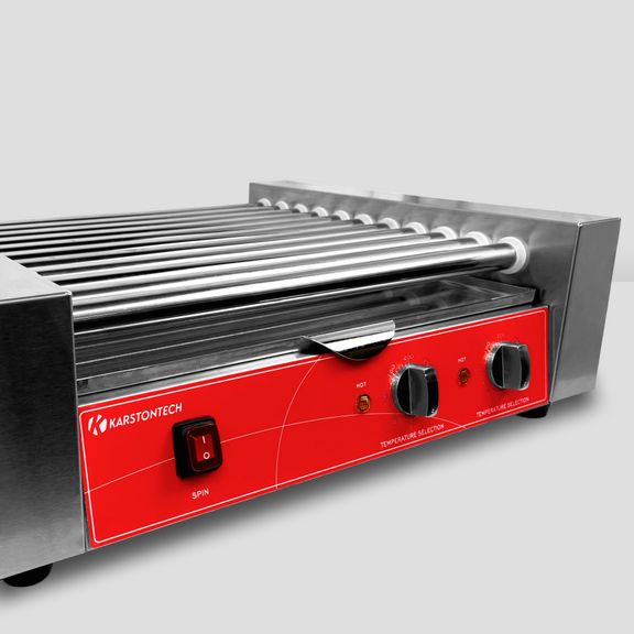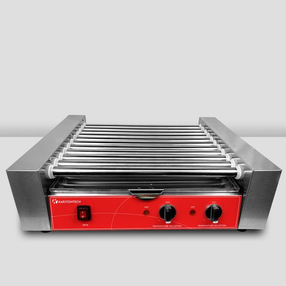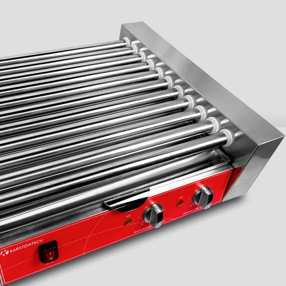 Настольный электрический роликовый гриль для хот-догов, сосисок KARSTONTECH KS-RG11 оснащен 11 роликами для равномерного обжаривания сосисок, сарделек, колбасок на предприятиях общественного питания и торговли. Роликовые грили KARSTONTECH позволяют автоматизировать процесс приготовления, упростить его и добиться стабильного качества приготавливаемого блюда.