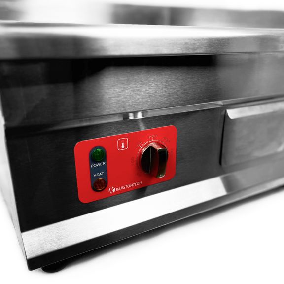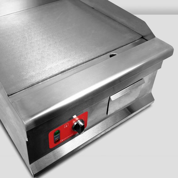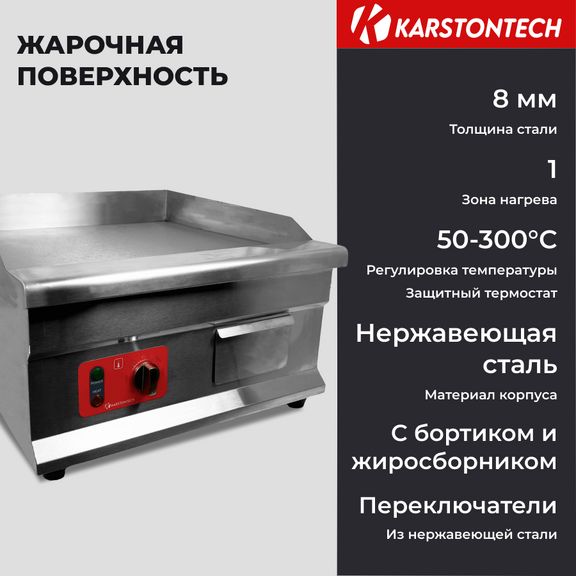 электрическая, настольная, гладкая рабочая поверхность из стали толщиной 8 мм с 1 зоной нагрева, 50-300С, защитный термостат, бортиком и жиросборником, материал корпуса - нерж.сталь