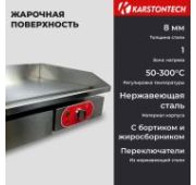 электрическая, настольная, гладкая рабочая поверхность из стали толщиной 8 мм с 2 зонами нагрева, 50-300C, бортиком и жиросборником, материал корпуса - нерж.сталь
