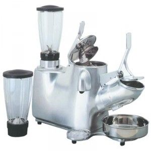 530х250х540 мм; 220 V, 0,65 В, 2 скорост., 2 пласт. кувшина по 1,2 л, Высокопрофессиональные 4-х функциональные машины, совмещающие следующие функции: измельчитель льда, автоматизированная соковыжималка для цитрусовых (со стальным конусом), блендер, блендер для фраппе.Метализированный, крашеный в серый цвет корпус. Комбинированный конкус из нерж. стали для лимона, апельсина, грейпфорута. Блендер двухскоростной. Термозащита