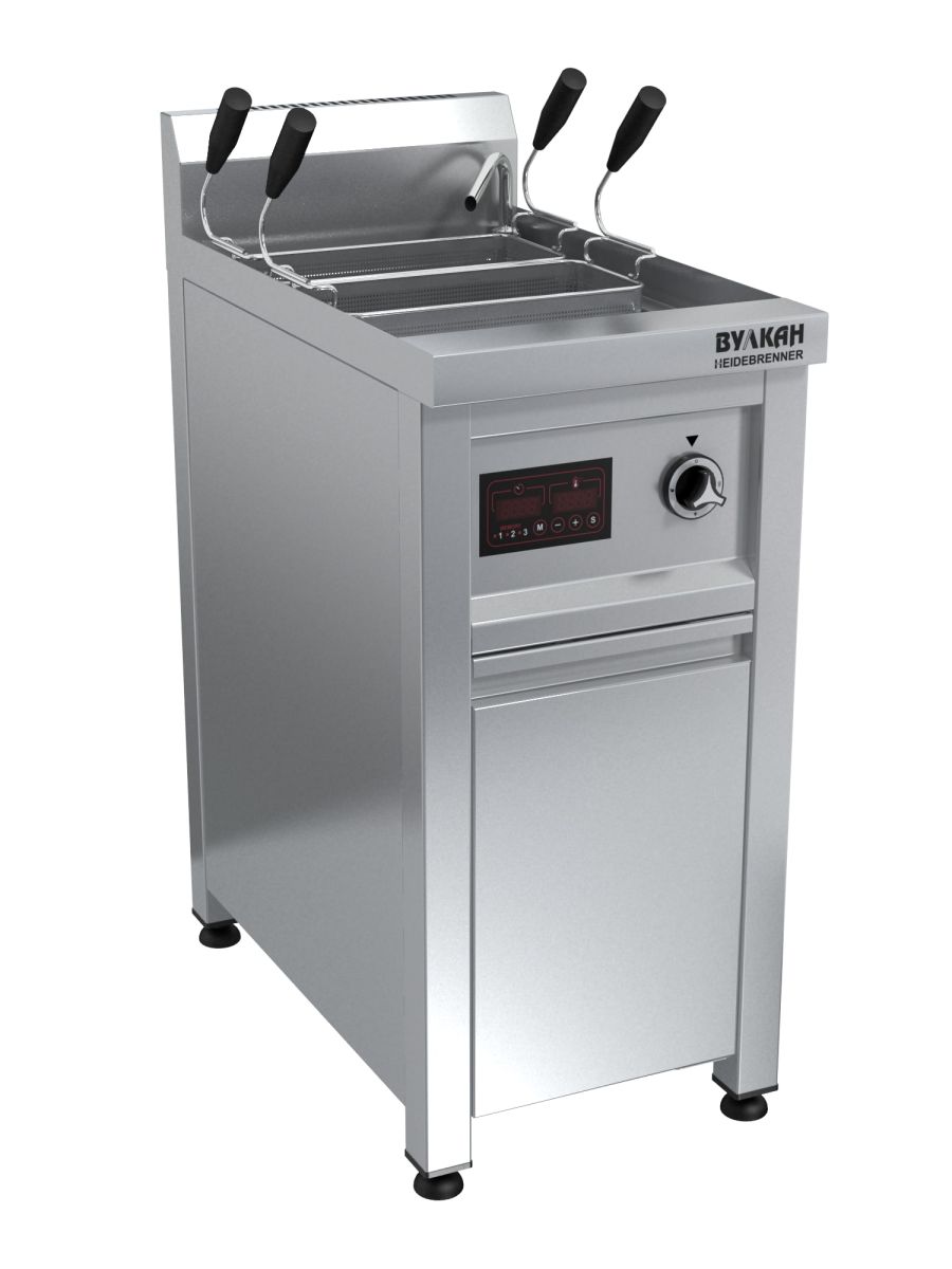 400х700х850мм, Мощность 7,5кВт, Объем ванны 25л, Питание 380В, Электронное управление, авт. поддержание температуры, авт. долив воды без прерывания кипения, 3 корзины 290х160х200 мм, либо 6 корзин 145х145х200 мм. Корзины в комплект НЕ входят.