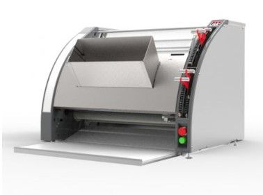962*1082*708мм, 1,1кВт, 380В, 3 раскаточных валика из пищевого полиэтилентерефталата. Вес тестовых заготовок от 50 до 1200г. Выходная полка на скользящих направляющих. Сверхбыстрая смена лент без демонтирования машины. Материал ленты - woolltop. Управление справа, лента для багета с острыми концами, выходные направляющие, входные направляющие. Производительность до 1200 шт/час