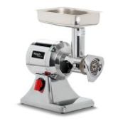 370x220х440 мм, 0,75 кВт, 220В, 150-200 кг/час, реверс, система ENTERPRISE (нож, решётка), диаметр отверстий в решётке 6 мм, стандарнтый нож, мясорубочная часть и шнек - пищевой чугун, нож и решётка - нержавеющая сталь, лоток и горловина - нержавеющая сталь. Диаметр загрузочной горловины для продукта 52 мм, диаметр горловины шнека и диаметр решеток 70 мм.