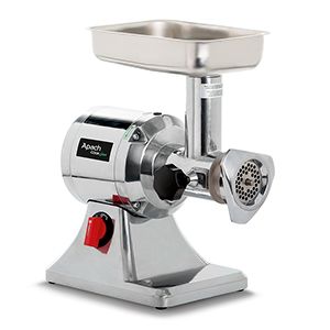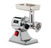 370x220х440 мм, 0,75 кВт, 380В, 150-200 кг/час, реверс, система ENTERPRISE (нож, решётка), диаметр отверстий в решётке 6 мм, стандарнтый нож, мясорубочная часть и шнек - пищевой чугун, нож и решётка - нержавеющая сталь, лоток и горловина - нержавеющая сталь. Диаметр загрузочной горловины для продукта 52 мм, диаметр горловины шнека и диаметр решеток 70 мм.