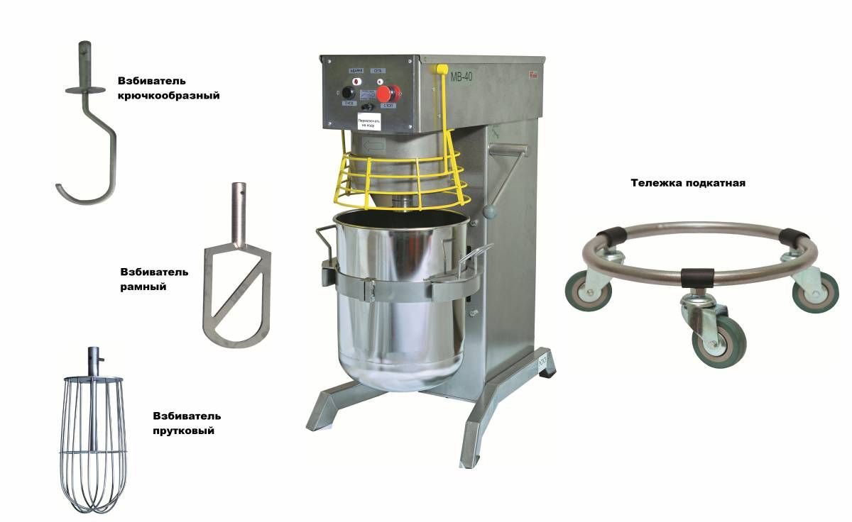 Машина предназначена для механизации процесса приготовления различных кондитерских смесей (безе, взбитых сливок, муссов, самбуков, кремов, и т. д.) и механической обработки других продуктов вязкой консистенции. Рекомендуется для эксплуатации в цехах по производству хлебопекарных, кондитерских изделий и на предприятиях общественного питания.В ее состав входят: