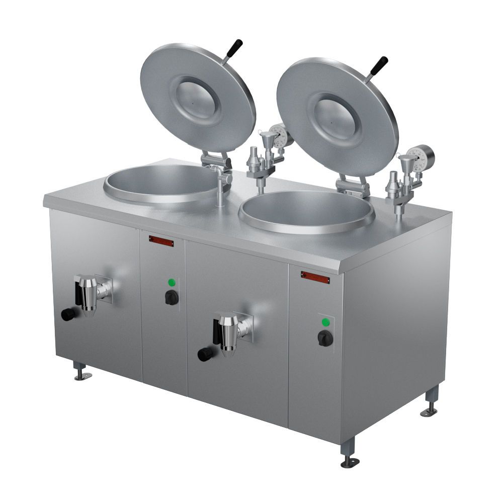 Для больниц, школ и столовых с проходимостью не более 300 человек, предлагаются новые модели котлов с двумя варочными сосудами, которые встроены в общий корпус. Рабочий объем составляет 150 л (по 75 л каждая варочная емкость). Имеется возможность изготовления под заказ моделей вместимостью 160 л (80 + 80 л), 200 л (100 + 100 л) и 250 л (125 + 125 л).