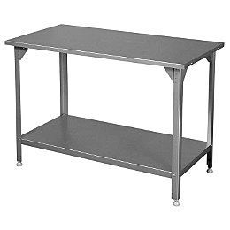 Модели данной группы столов представляют собой сборно-разборные изделия, в основе которых крашеный металлический каркас, столешница из нержавеющей стали, решетчатая или сплошная полкаГабариты, Д×Ш×В, мм 1200×600×800
