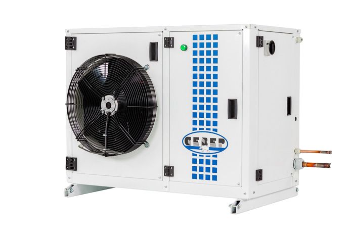 - Конденсатор. Применение конденсатора с воздушным охлаждением является наиболее экономичным способом комплектации изделия и не требует дополнительных затрат. Для охлаждения конденсатора используются осевые вентиляторы.