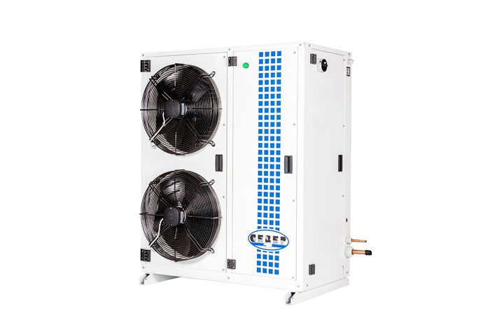- Конденсатор. Применение конденсатора с воздушным охлаждением является наиболее экономичным способом комплектации изделия и не требует дополнительных затрат. Для охлаждения конденсатора используются осевые вентиляторы.
