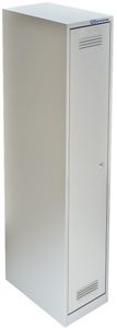 300х500х1750, корпус из крашенного металла, секций одна,одностворч., верх. и ниж. полка, крючки, замок, 0,28V, м3, Изговливаются из металла покрытый порошковой краской, толщина металла 0,5 мм. Сварная конструкция..