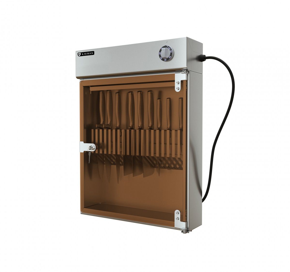 Заказ от 5шт.465х145х605мм, AISI430, 8Вт, 220В, таймер 60мин, настенный, в комплекте: решетка-держатель на 18 ножей , 1шт. ртутная лампа низкого давления ДРБ 8-1.Бактерицидный поток лампы 0,16Вт. Средний срок службы лампы 5000 ч. Колба-стекло увиолевое. Предназначен для дезинфекции поварских ножей различных размеров и других инструментов на предприятиях пищевой промышленности, торговли и общественного питания. Ограничения по размерам (для ножей): максимальная длина ручки - 14 см, лезвия - 28 см. Ширина каждой ячейки - 9 мм.
