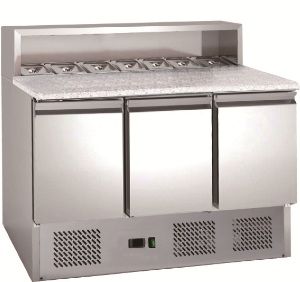 1365x700x1075мм, 0,24кВт, 220В, 402л, температурный режим +2/+8, статическое охлаждение с вспомогательным вентилятором, 3 двери, вместимость: 8хGN1/6 (гастроемкости в комплект не входят)