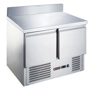 900x700x976 мм, 230В, 0,17 кВт, 240 л, +2…+8 С, 2 двери, полки GN1/1, одна полка для каждой двери в комплекте, столешница из нержавеющей стали, с бортом, нижнее расположение холодильного агрегата, вентилируемое охлаждение