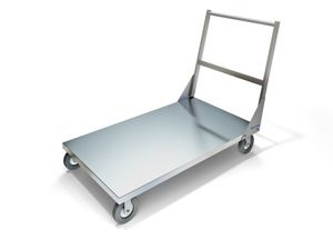 1200х700х950, каркас сварной рама труба 20*40 черного металла, платформа AISI 430-2 мм, ручки - труба черного металла, грузоподъемность 300 кг, 0,36V, м3