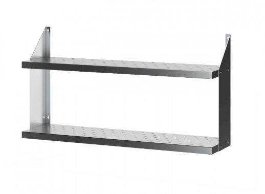 ТИП ПОЛКИ: навесная перфорированная 2-х ярусная МАТЕРИАЛ ПОЛКИ: нержавеющая сталь AISI 430 (1 мм) КОЛИЧЕСТВО ПОЛОК: 2 ТОЛЩИНА ПОЛКИ: 40 мм ВИД КРЕПЛЕНИЯ: уголок (косынка)