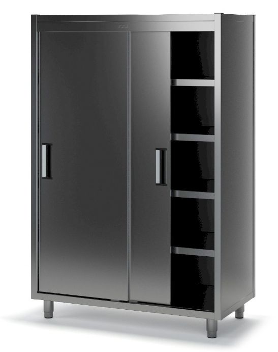 МАТЕРИАЛ: нержавеющая сталь AISI 430 (1 мм) ТИП КАРКАСА: ножки: регулируемая винтовая опора ТИП ДВЕРЕЙ: купе КОЛИЧЕСТВО ПОЛОК: 4 + дно НОЖКИ: регулируемая винтовая опора