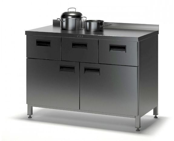 МАТЕРИАЛ КАРКАСА: нержавеющая сталь НАЛИЧИЕ БОРТА: есть борт ТИП СТОЛЕШНИЦЫ: усиленная ЛДСП МАТЕРИАЛ СТОЛЕШНИЦЫ: нержавеющая сталь AISI 430 (1 мм) МАТЕРИАЛ ЗАДНЕЙ СТЕНКИ: оцинкованная сталь КОЛИЧЕСТВО ЯЩИКОВ: 3 НОЖКИ: регулируемая винтовая опора