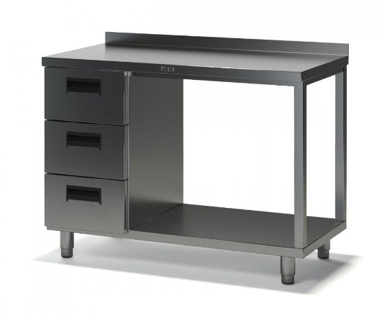 МАТЕРИАЛ КАРКАСА: нержавеющая сталь НАЛИЧИЕ БОРТА: есть борт ТИП СТОЛЕШНИЦЫ: усиленная ЛДСП МАТЕРИАЛ СТОЛЕШНИЦЫ: нержавеющая сталь AISI 430 (1 мм) НОЖКИ: регулируемая винтовая опора
