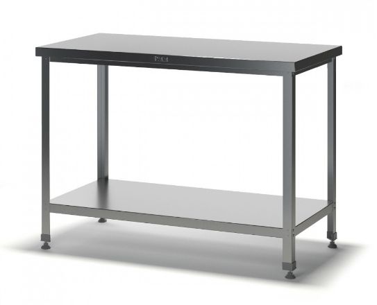 МАТЕРИАЛ КАРКАСА: нержавеющая сталь AISI 430 (2 мм) НАЛИЧИЕ БОРТА: нет борта ТИП СТОЛЕШНИЦЫ: усилена листом ДСП (16 мм) МАТЕРИАЛ СТОЛЕШНИЦЫ: нержавеющая сталь AISI 430 (1 мм) ТИП ПОЛКИ: сплошная МАТЕРИАЛ ПОЛКИ: нержавеющая сталь ВЫСОТА ПОЛКИ ОТ ПОЛА: 150 мм ТИП КАРКАСА: уголок 40*40 ТИП СТОЛА: разборный НОЖКИ: регулируемая винтовая опора