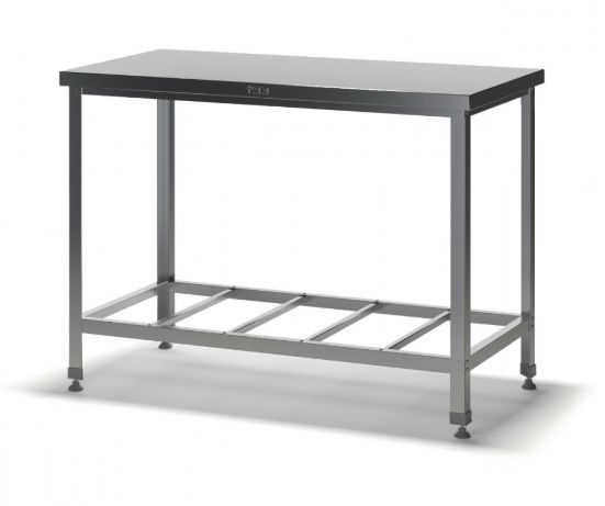 МАТЕРИАЛ КАРКАСА: оцинкованная сталь (2 мм) НАЛИЧИЕ БОРТА: нет борта ТИП СТОЛЕШНИЦЫ: усилена листом ДСП (16 мм) МАТЕРИАЛ СТОЛЕШНИЦЫ: нержавеющая сталь AISI 430 (1 мм) ТИП ПОЛКИ: решетка МАТЕРИАЛ ПОЛКИ: оцинкованная сталь ВЫСОТА ПОЛКИ ОТ ПОЛА: 150 мм ТИП КАРКАСА: уголок 40*40 ТИП СТОЛА: разборный НОЖКИ: регулируемая винтовая опора