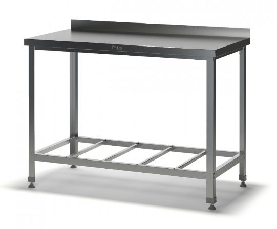 МАТЕРИАЛ КАРКАСА: нержавеющая сталь AISI 430 (2 мм) НАЛИЧИЕ БОРТА: есть борт ТИП СТОЛЕШНИЦЫ: усилена листом ДСП (16 мм) МАТЕРИАЛ СТОЛЕШНИЦЫ: нержавеющая сталь AISI 430 (1 мм) ТИП ПОЛКИ: решетка МАТЕРИАЛ ПОЛКИ: нержавеющая сталь ВЫСОТА ПОЛКИ ОТ ПОЛА: 150 мм ТИП КАРКАСА: уголок 40*40 ТИП СТОЛА: разборный НОЖКИ: регулируемая винтовая опора