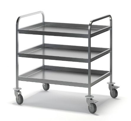НАЛИЧИЕ БОРТА: есть борт МАТЕРИАЛ: нержавеющая сталь AISI 430 (1 мм) КОЛИЧЕСТВО ПОЛОК: 3 ТИП КОЛЕС: поворачиваемые ДИАМЕТР КОЛЕС: 100 мм
