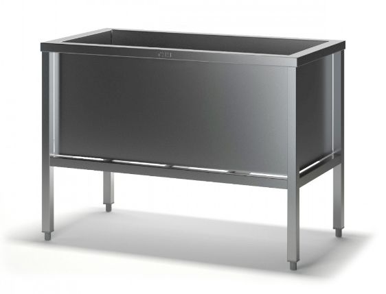 МАТЕРИАЛ КАРКАСА: нержавеющая сталь AISI 430 (1,2 мм) НАЛИЧИЕ БОРТА: нет борта КОЛИЧЕСТВО СЕКЦИЙ: 1 секция ТИП КАРКАСА: профиль квадратного сечения 40*40 НОЖКИ: регулируемая винтовая опора ТИП ВАННЫ: котломоечная