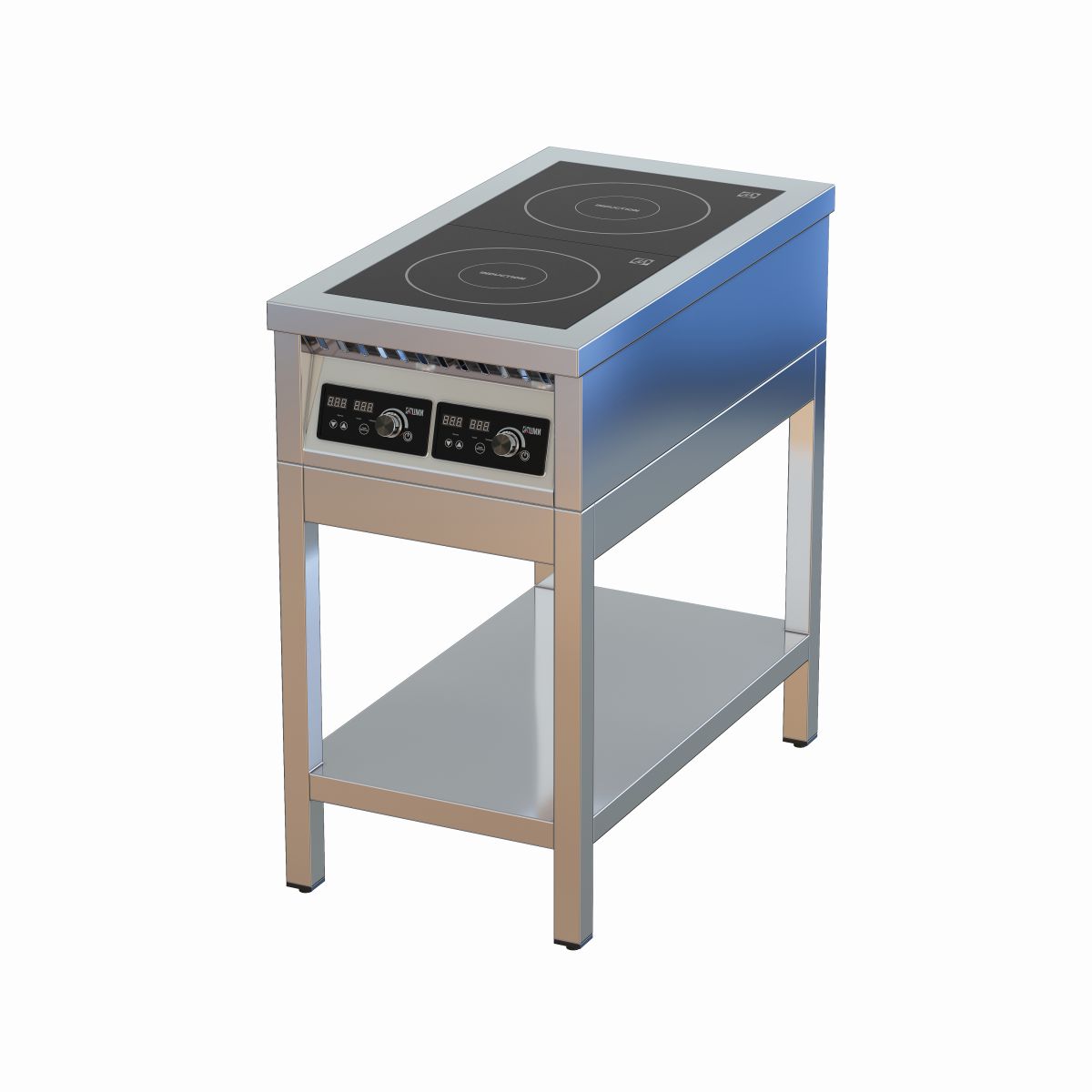 Корпус настольной плиты выполнен полностью из нержавеющей стали AISI 430 0,8 мм. Корпус подставки выполнен из нержавеющей стали AISI 430 и всегда комплектуется сплошной полкой. Ноги - труба 40х40х1,2 мм, укомплектованы пластиковыми заглушками с регулируемой по высоте опорой. Высота регулировки до 20 мм. Верхний контур - лист толщиной 1,5 мм. Сплошная полка, закрытия и двери - лист толщиной 0,8 мм. Корпус настольный плиты может эксплуатироваться отдельно без подставки. Подставка сварная.