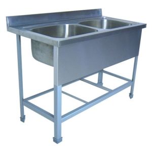 1200х600х850мм, Две цельнотянутые емкости размером 500х400х250 из нержавеющей стали марки AISI 304 толщиной 1мм, обнижение 15 мм. Объемный пристенный борт высотой 70мм. Фартук с 3-х сторон высотой 285 мм. Каркас сварной из трубы 40х40 нержавеющей стали марки AISI 430 толщиной 1,2мм, с тыловой части установлены две перемычки для жесткости. Ванна комплектуется выпуском с нержавеющей решеткой и механическим запорным клапаном, диаметр выпуска 90мм, диаметр подключаемого сифона 50мм, перелив, регулируемые опоры. На дно ванны нанесена виброшумоизоляция. Ванна поставляется в собранном виде.