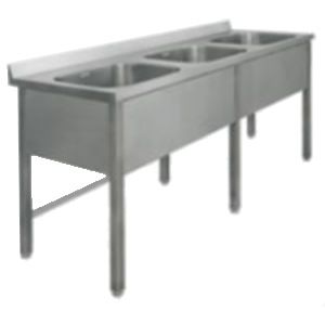 2100х800х850мм, Три цельнотянутые емкости размером 600х600х330 из нержавеющей стали марки AISI 304 толщиной 1мм, обнижение 2 мм. Объемный пристенный борт высотой 70мм. Фартук с 3-х сторон высотой 285 мм. Корпус сварной из нержавеюшей стали марки AISI 304 толщиной 0,8мм. Двери-купе, полка. Ванна комплектуется выпуском с нержавеющей решеткой и механическим запорным клапаном, диаметр выпуска 90мм, диаметр подключаемого сифона 50мм, перелив, регулируемые опоры. На дно ванны нанесена виброшумоизоляция. Ванна поставляется в собранном виде.