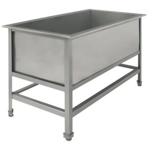 1540х800х850мм, Одна емкость сварная размером 1440х700х450 из нержавеющей стали марки AISI 304 толщиной 0,8мм. Каркас сварной из уголка 40х40 толщиной 2мм, покрытого порошковой краской серого цвета, внизу по периметру обвязка. Ванна комплектуется выпуском с нержавеющей решеткой и механическим запорным клапаном, диаметр выпуска 90мм, диаметр подключаемого сифона 50мм, регулируемые опоры. На дне ванны ребра (лучи) для жесткости и снижения вибрации. Ванна поставляется в собранном виде.