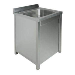 600х600х850мм, Одна цельнотянутая емкость размером 500х400х250 из нержавеющей стали марки AISI 304 толщиной 1мм, обнижение 15 мм. Объемный пристенный борт высотой 70мм. Корпус из трубы 40х40 нержавеющей стали марки AISI 304 толщиной 1,2мм.и боковых панелей из нержавеющей стали марки AISI 304 толщиной 0,8мм. Одна распашная дверь, полка. Ванна комплектуется выпуском с нержавеющей решеткой и механическим запорным клапаном, диаметр выпуска 90мм, диаметр подключаемого сифона 50мм, перелив, регулируемые опоры. На дно ванны нанесена виброшумоизоляция. Ванна поставляется в собранном виде.