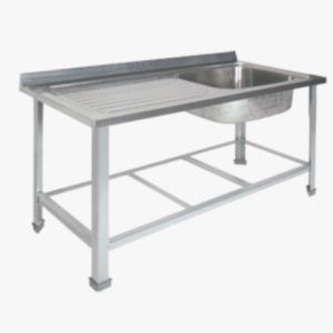 1200х600х850мм, Одна цельнотянутая емкость размером 500х400х250 из нержавеющей стали марки AISI 304 толщиной 1мм, ванна слева, обнижение 15мм, крыло рифленое с сушкой и наклоном для стекания воды с посуды в ванну. Объемный пристенный борт высотой 70мм. Каркас сварной из уголка 40х40 толщиной 2мм, покрытого порошковой краской серого цвета, внизу по периметру обвязка. Ванна комплектуется выпуском с нержавеющей решеткой и механическим запорным клапаном, диаметр выпуска 90мм, диаметр подключаемого сифона 50мм, перелив, регулируемые опоры. На дно ванны нанесена виброшумоизоляция. Ванна поставляется в собранном виде.