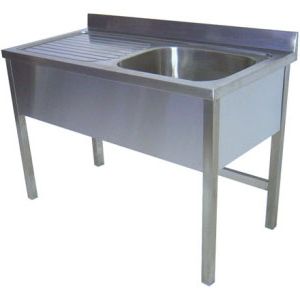 1200х700х850мм, Одна цельнотянутая емкость размером 500х500х300 из нержавеющей стали марки AISI 304 толщиной 1мм, ванна справа, обнижение 15мм, крыло рифленое с сушкой и наклоном для стекания воды с посуды в ванну. Объемный пристенный борт высотой 70мм. Фартук с 3-х сторон высотой 285 мм. Каркас сварной из трубы 40х40 нержавеющей стали марки AISI 304 толщиной 1,2мм, с тыловой части установлены две перемычки для жесткости. Ванна комплектуется выпуском с нержавеющей решеткой и механическим запорным клапаном, диаметр выпуска 90мм, диаметр подключаемого сифона 50мм, перелив, регулируемые опоры. На дно ванны нанесена виброшумоизоляция. Ванна поставляется в собранном виде.